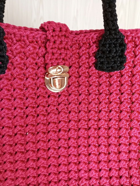 Elevate your accessory collection with the Roseylicious Tote, a sophisticated blend of artisanal craftsmanship and contemporary design. We meticulously handcraft this exquisite piece using 3mm polypropylene cord, featuring a dense, textured even moss stitch that maintains an elegant structure while remaining soft to the touch. Sleek black handles and subtle ivory-white accents perfectly complement the vibrant fuchsia pink body, creating a high-contrast aesthetic that transitions effortlessly from casual daywear to social evening gatherings.